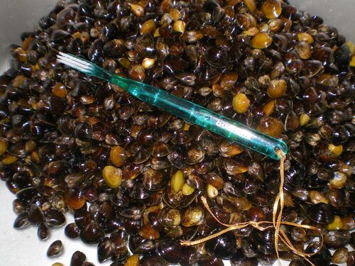 4月11日(金) 4月の12の潮 サイコー! 12:30~掘れるらしいが、着いたのは1時過ぎ。 2人来ていた。 1時→ 葦から1.5mしか引いていないが、引き潮と戻り潮とが手伝ってくれて サイコーにとりやすい。 4時半あたりには3mほど引いている。 5時が近づいてきた…