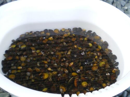 5月10日(土) 1:30分に着いたら 2mくらい引いていて 掘ってみると ポロンポロンと出てくるが あまり採れない。 だんだん潮が引いて 沖が掘れるようになったら さぞや居るんだろうと思っていたが シジミは沖にも居ない。 採りつくされた感がある。 沖まで…